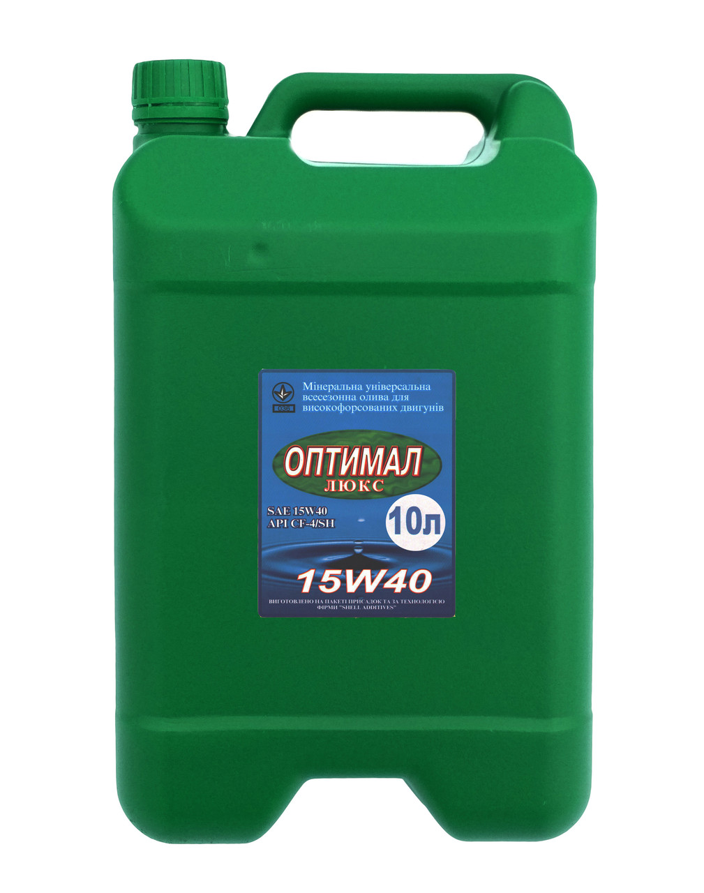 Мінеральна універсальна моторна олива Оптимал 15W40 Люкс для високофорсованих дизельних та карбюраторних двигунів, у тому числі двигунів з турбонаддувом та оснащених каталізатором.