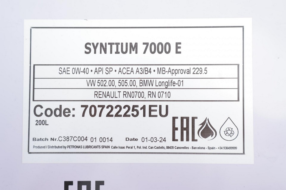 Олива моторна PETRONAS SYNTIUM 7000 E 0W-40 200л. 70722251EU