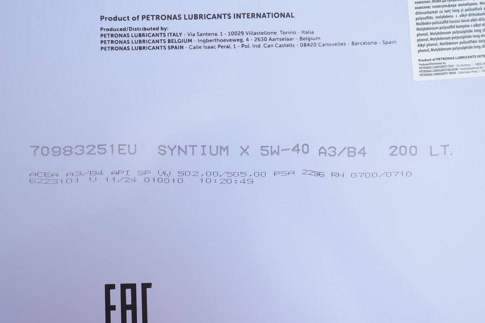 Олива моторна PETRONAS SYNTIUM X 5W-40 200л. 70983251EU