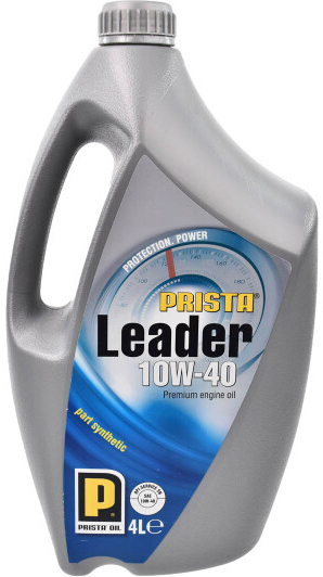 Напівсинтетична моторна олива Prista Oil Leader 10W-40 виробляється для сучасних дизельних ДВЗ і бензинових ДВЗ комерційного (легковантажного) транспорту оснащеного системою безпосередньої подачі палива, що впорскується під високим тиском, обладнаного турбокомпресорами. Продукт відповідає найвищим вимогам до оливи, встановленим провідними виробниками двигунів (їх специфікаціям).