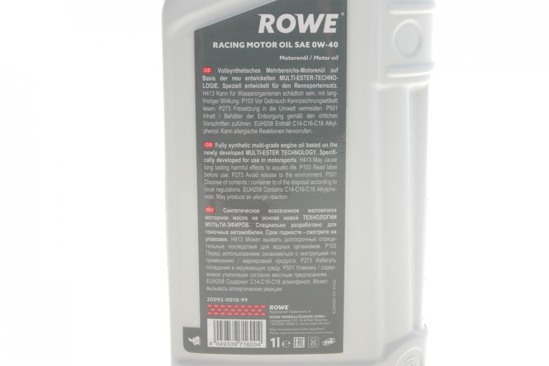 Олива моторна ROWE HIGHTEC RACING MOTOR OIL 0W-40 1л. 20092001099