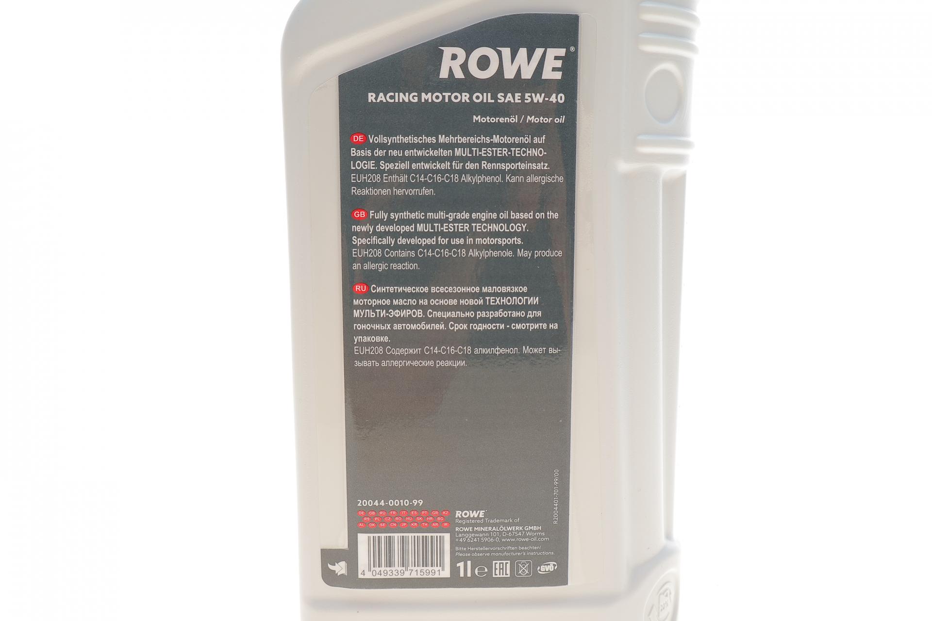Олива моторна ROWE HIGHTEC RACING MOTOR OIL 5W-40 1л. 20044001099