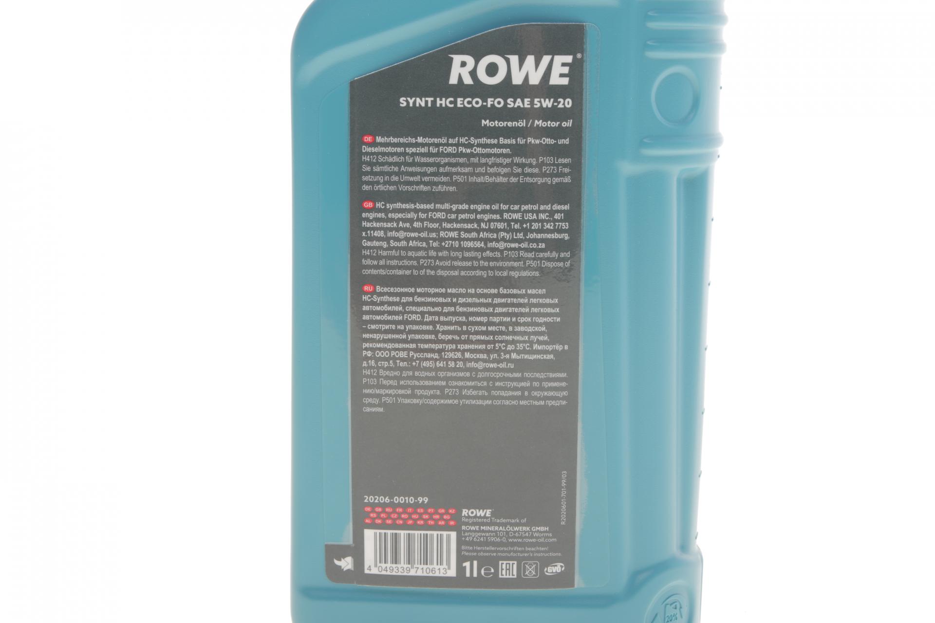 Олива моторна ROWE HIGHTEC SYNT HC ECO-FO 5W-20 1л. 20206001099