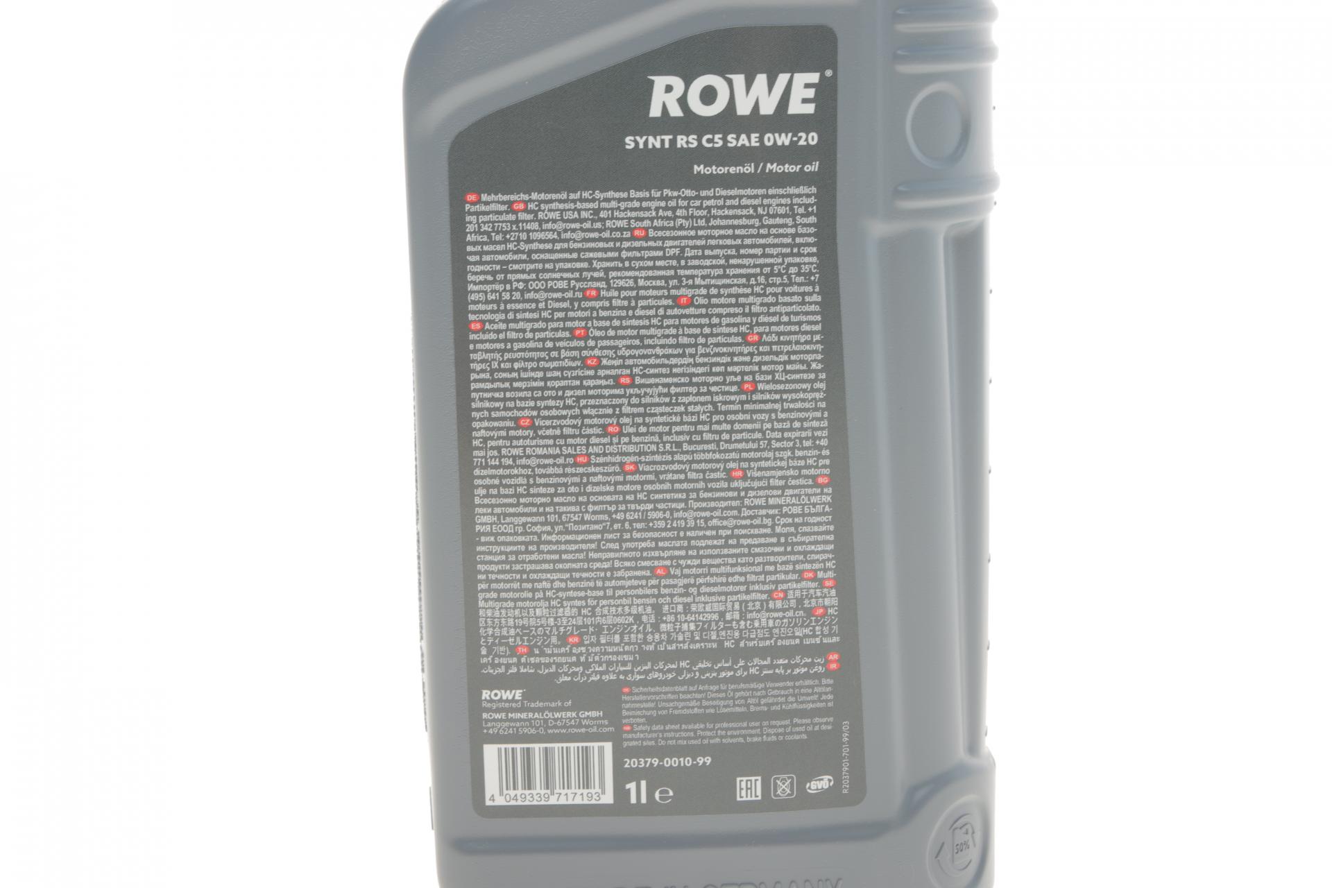 Олива моторна ROWE HIGHTEC SYNT RS C5 0W-20 1л. 20379001099