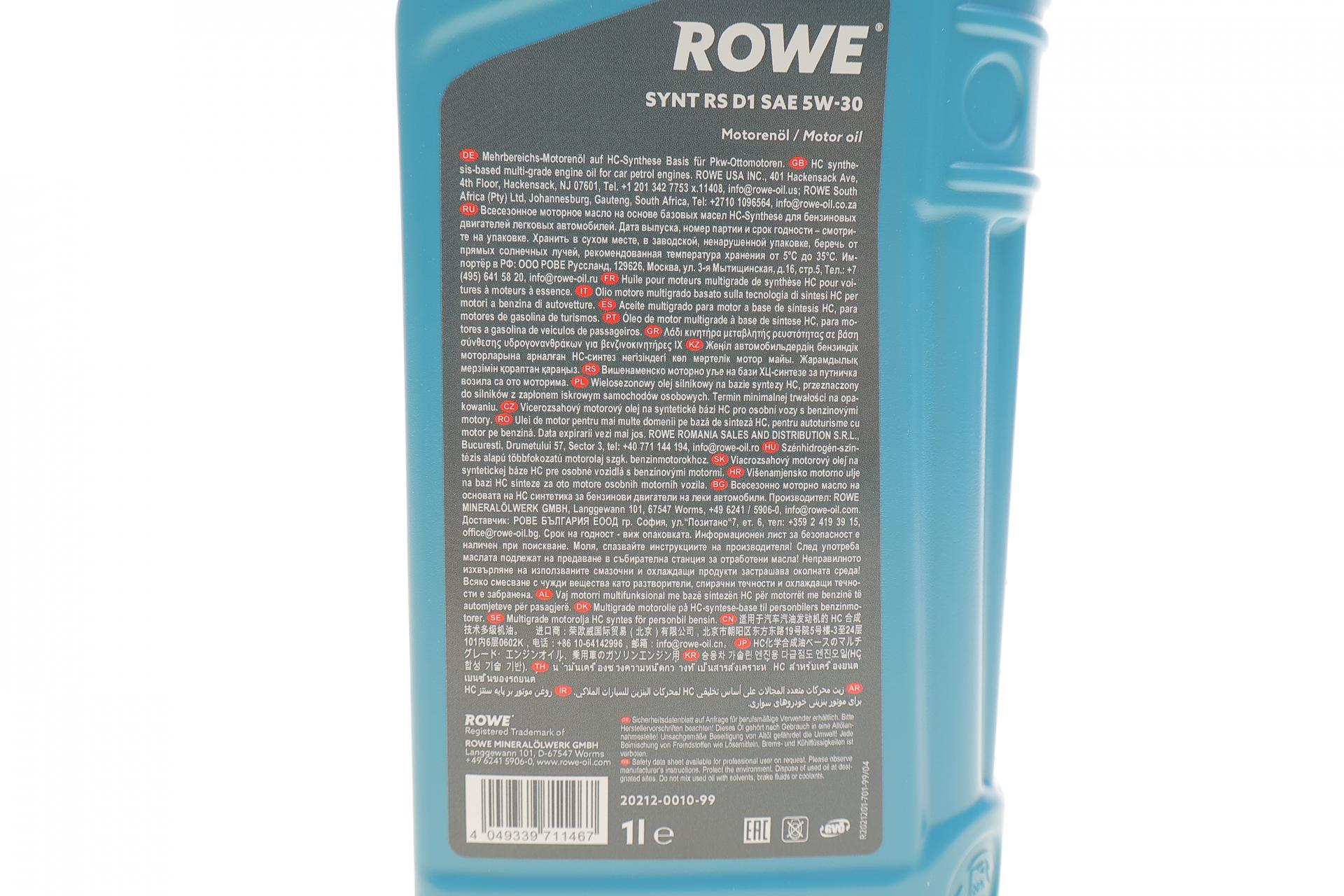 Олива моторна ROWE HIGHTEC SYNT RS D1 5W-30 1л. 20212001099