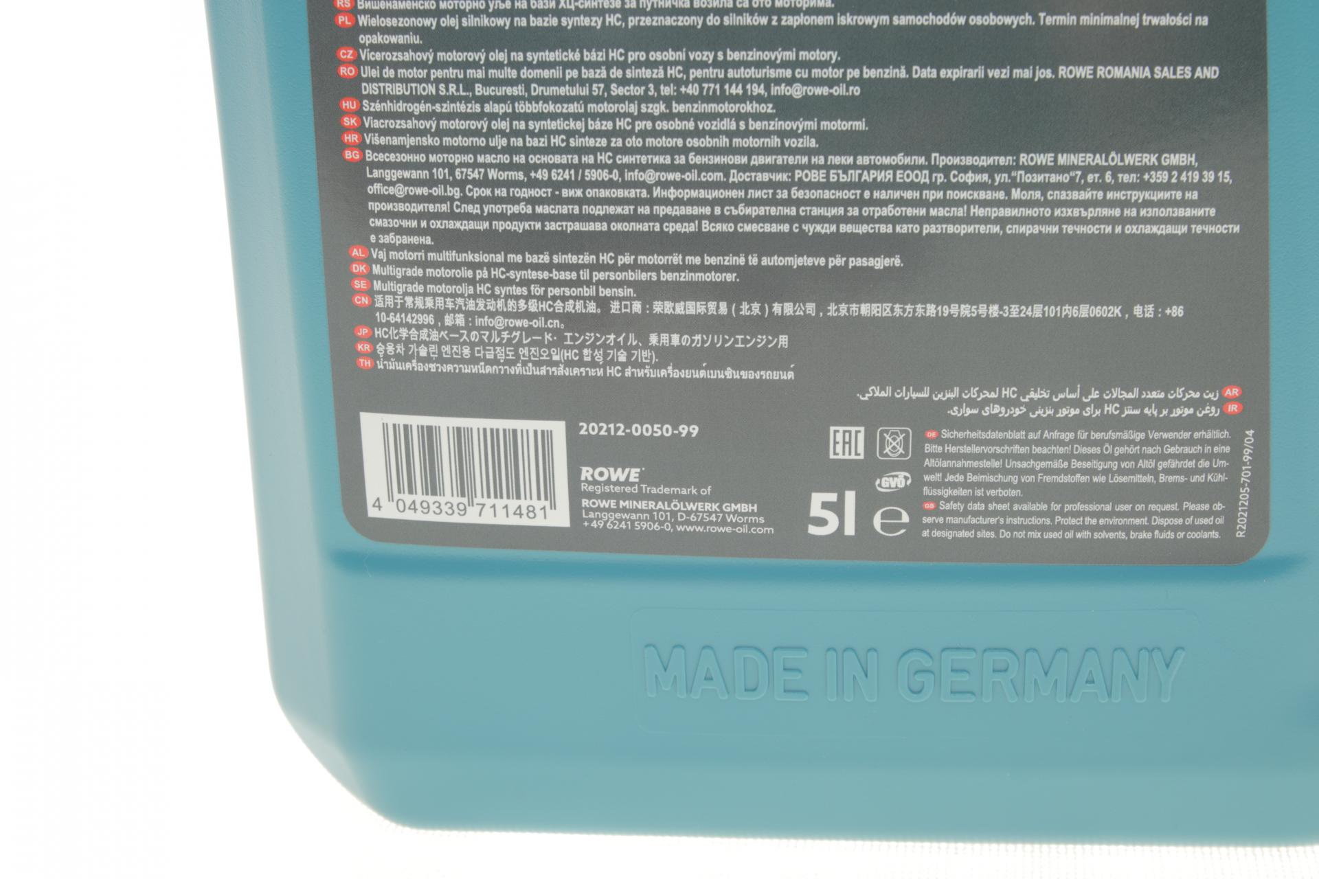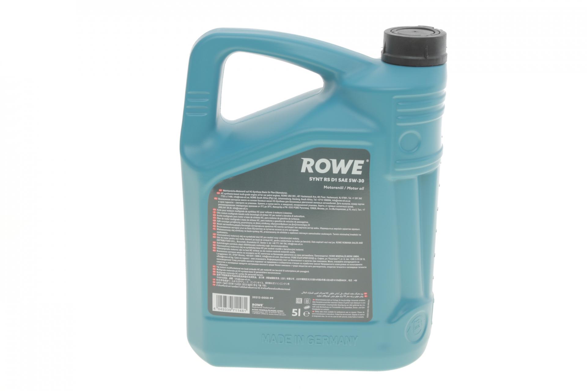 Олива моторна ROWE HIGHTEC SYNT RS D1 5W-30 5л. 20212005099