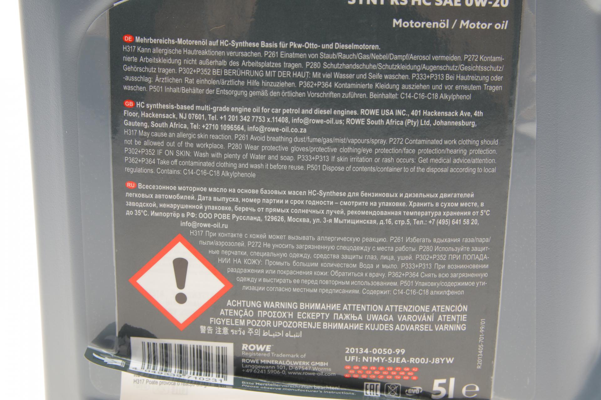 Олива моторна ROWE HIGHTEC SYNT RS HC 0W-20 5л. 20134005099