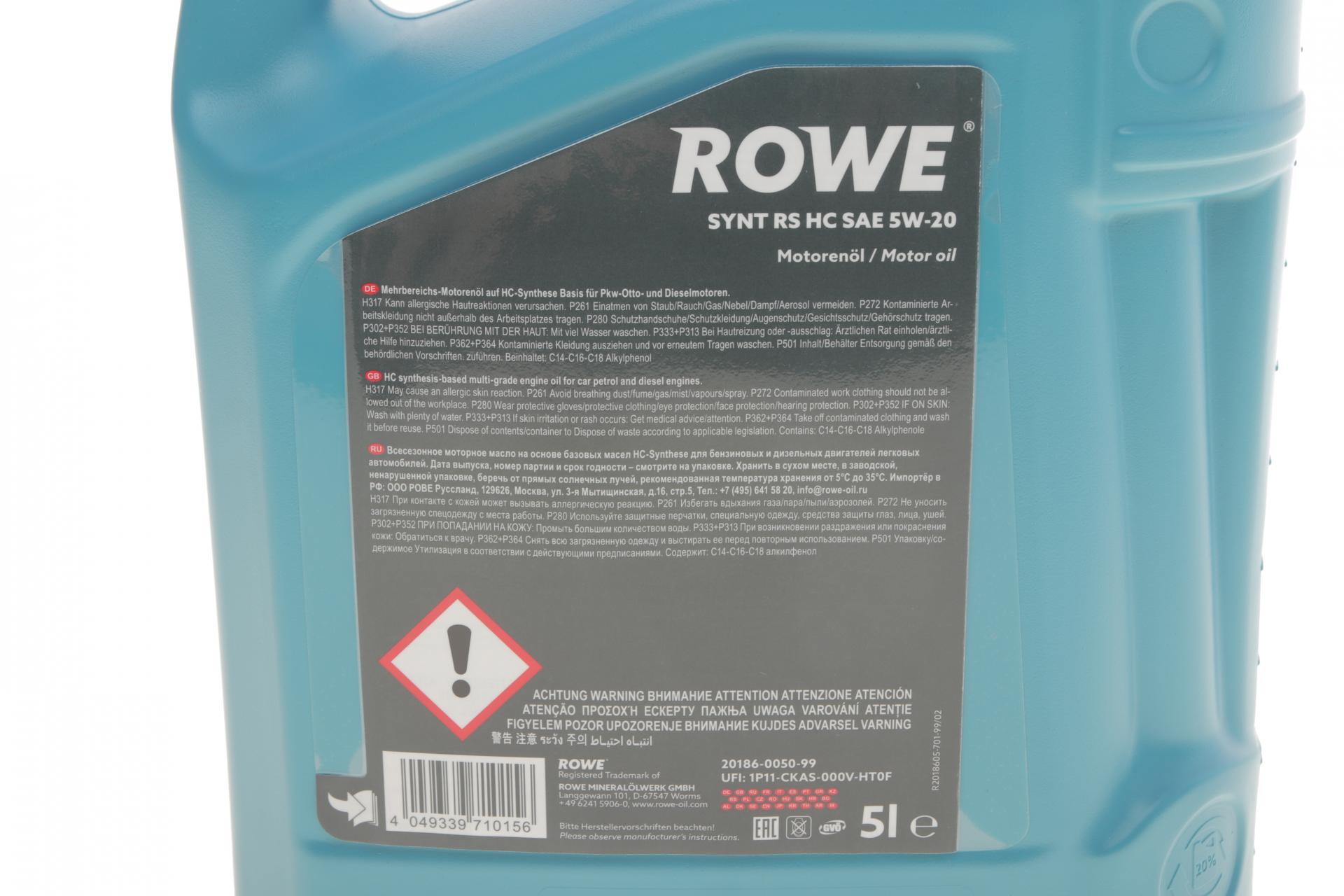 Олива моторна ROWE HIGHTEC SYNT RS HC 5W-20 5л. 20186005099