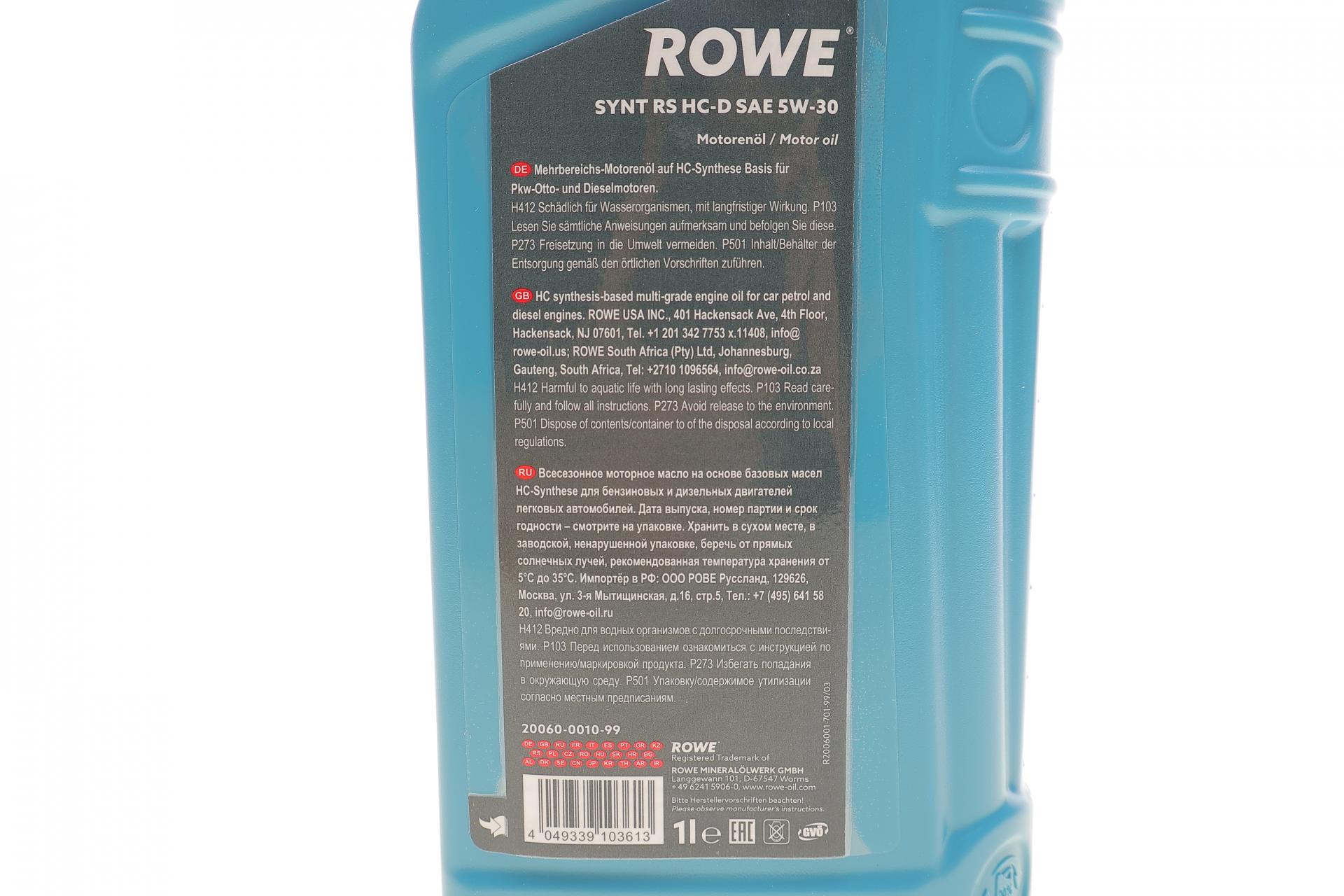 Олива моторна ROWE HIGHTEC SYNT RS HC-D 5W-30 1л. 20060001099