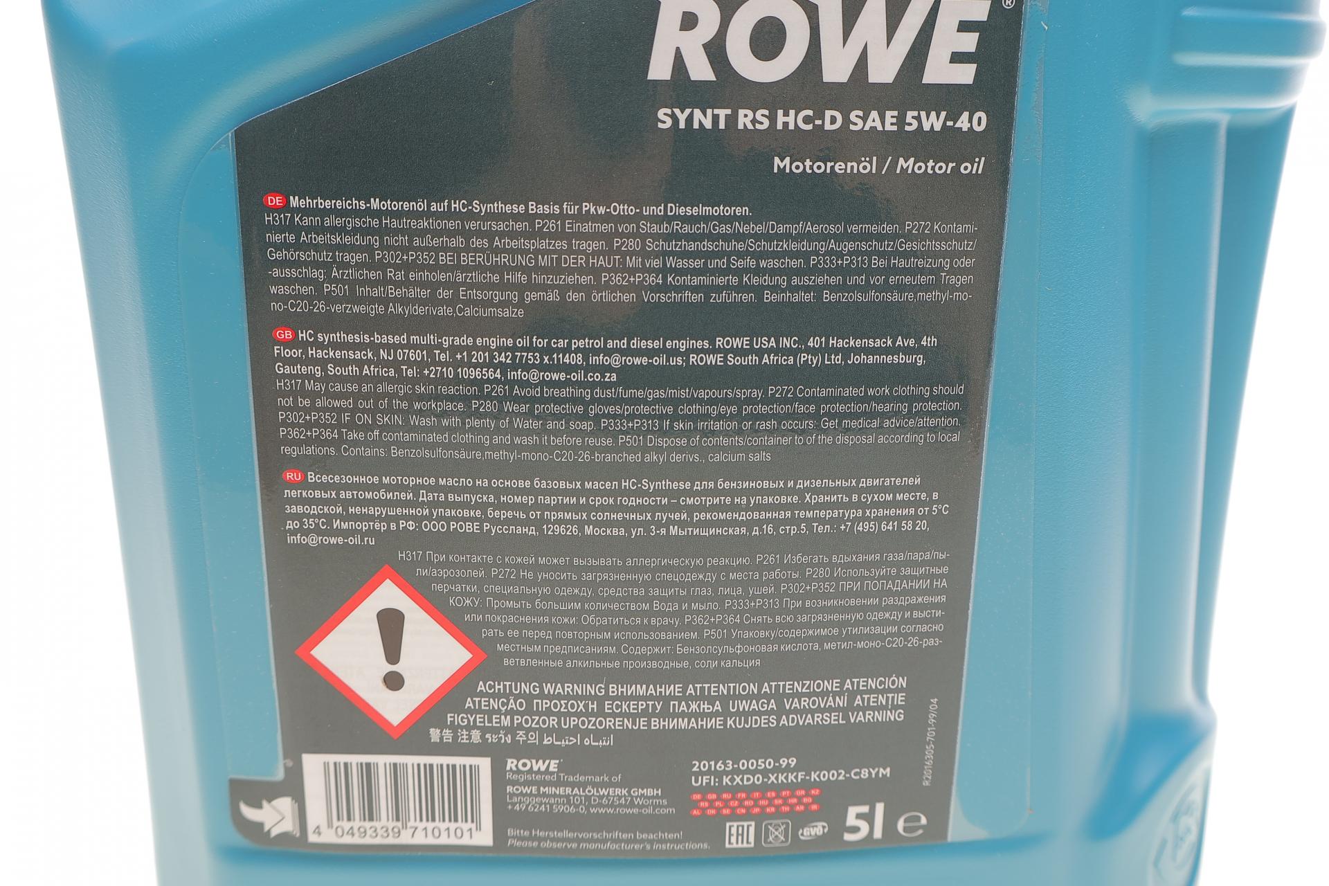 Олива моторна ROWE HIGHTEC SYNT RS HC-D 5W-40 5л. 20163005099
