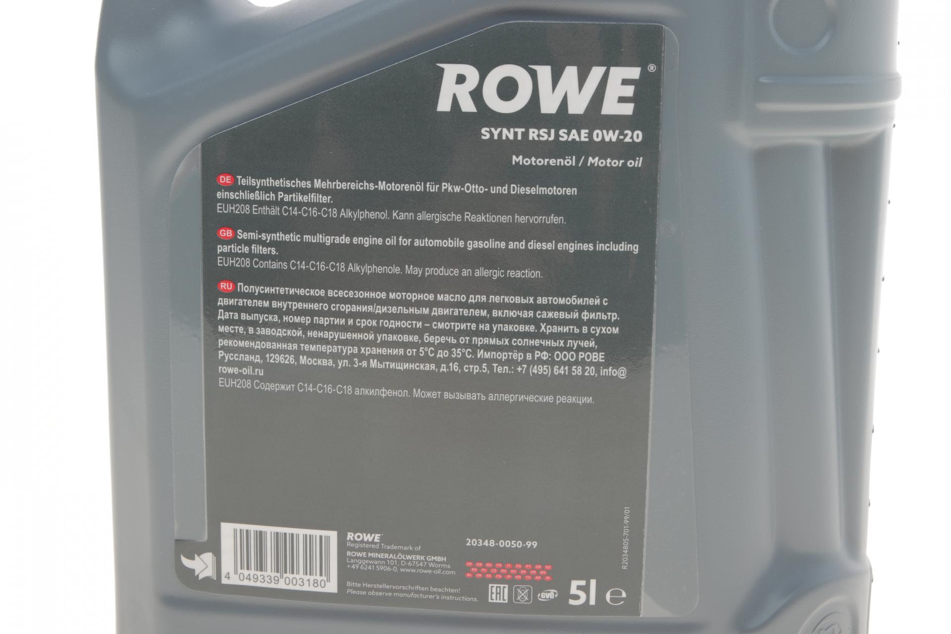 Олива моторна ROWE HIGHTEC SYNT RSJ 0W-20 5л. 20348005099