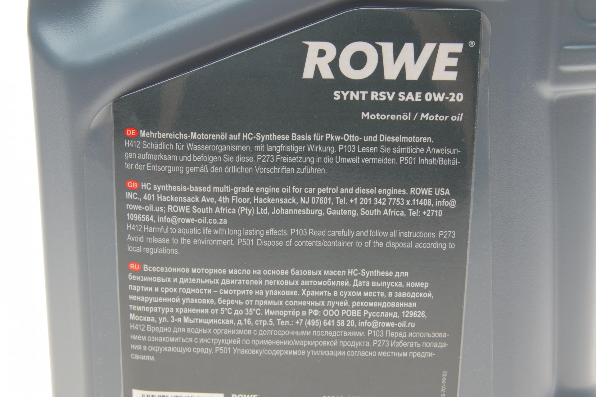 Олива моторна ROWE HIGHTEC SYNT RSV 0W-20 5л. 20260005099
