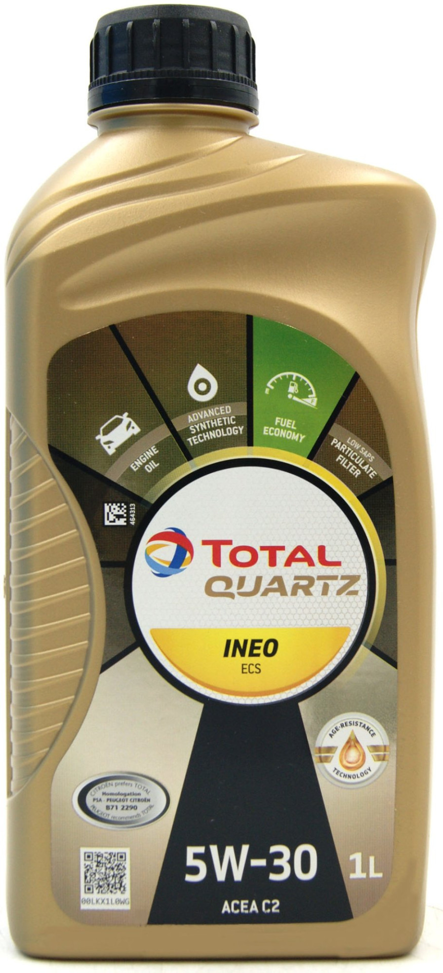 Моторна олива нового покоління зі зниженою сульфатною зольністю та низьким вмістом фосфору та сірки, спеціально розроблена для двигунів PEUGEOT та CITROEN. Ця високотехнологічна олива дозволяє економити паливо та оптимізує функціонування систем контролю над випуском забруднюючих речовин в атмосферу, наприклад, дизельних фільтрів сажі. Енергозберігаючий мастильний матеріал другого покоління: його можна застосовувати у всіх дизельних двигунах (сучасних та попередніх поколінь). Також підходить для більшості бензинових двигунів (перед використанням див. посібник з обслуговування свого транспортного засобу). олива TOTAL QUARTZ INEO ECS необхідна для правильного функціонування дизельного фільтра сажі, так само як і інших систем подальшої обробки вихлопних газів. Може застосовуватися за найскладніших режимів експлуатації та застосовуватися у найважчих умовах (автомагістралі, інтенсивний міський рух…), всесезонний. ПЕРЕВАГИ: Застосування даного мастильного матеріалу відповідно до його призначення та наших рекомендацій не становить особливої небезпеки. Паспорт безпеки продукту, відповідно до вимог норм, що діють в ЄС, може бути наданий на запит місцевим торговим представником. Збільшення тривалості терміну служби фільтрів сажі Економія палива Контроль над випуском забруднюючих речовин в атмосферу Захист і чистота двигуна Забезпечує довгострокові оптимальні характеристики, ефективність і тривалість терміну служби фільтрів сажі, запобігаючи їх передчасному засміченню. Сформульовано з меншим на половину (50%) вмістом металовмісних присадок порівняно з маслом, виробленим за звичайною технологією. Економія палива: до 6% при пуску, в середньому 3,5% - в умовах змішаного водіння в порівнянні з моторним маслом, що відповідає стандарту ACEA (випробування проведено на Citroen C4 1.6 HDi). Система контролю над випуском забруднюючих речовин в атмосферу (ECS – Emission Control System): сприяє зменшенню викидів СО2 та твердих частинок сажі в атмосферу. Додатково до підвищення ефективності дії дизельного фільтра сажі, зменшення витрати палива веде до зменшення випуску СО2, низький вміст фосфору покращує ефективність дії каталітичних нейтралізаторів, клапани системи рециркуляції відпрацьованих газів менше засмічуються, все це сприяє кращому контролю над випуском Nox Завдяки швидкому змазуванню, та диспергуючих присадок, які забезпечують та гарантують чистоту двигуна, масло QUARTZ INEO ECS задовольняє найскладнішим циклам обслуговування та експлуатації PSA. Допуски та специфікації:ACEA C2;A5;B5; PSA B71 2290