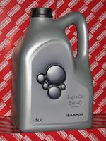 Синтетична моторна олива SAE 5W-40 LEXUS. Відповідає найжорсткішим вимогам до олив останнього покоління. Стабільність в'язкісних і змащувальних властивостей, сталість експлуатаційних характеристик у різних умовах роботи, відмінна плинність при низьких температурах - ось відмінні риси синтетичної моторної оливи Toyota SAE 5W-40. Асоціації європейських автовиробників), а й найсуворішим вимогам до якості та експлуатаційних характеристик. Компанія Toyota тестує свої оливи в умовах максимально наближених до реальних, використовуючи для випробувань оригінальні двигуни автомобілів Toyota. Тому мастильні матеріали Toyota мають оптимальну якість і характеристики, що забезпечують найкращу роботу двигуна. Зроблено у Європі. Допуски та специфікації:ACEA A3;B3;B4; API SL; CF.
