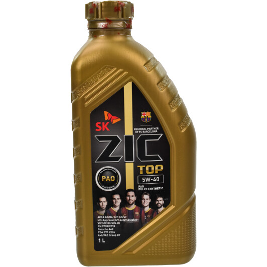 ZIC TOP 5W-40 - повністю синтетична моторна олива для бензинових та дизельних двигунів легкових автомобілів та легкого комерційного транспорту. Виготовлена на основі поліальфаолефінів (ПАO) та власної синтетичної базової оливи YUBASE PLUS.