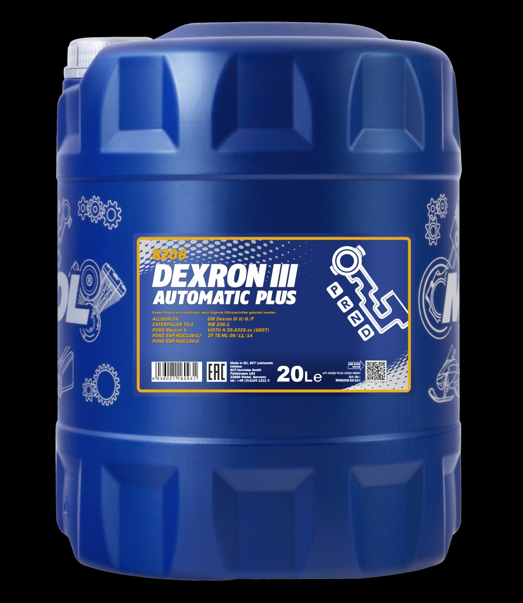 Ми 100% гарантуємо якість та справжність DEXRON III AUTOMATIC PLUS Mannol MN820620, представленого в нашому інтернет-магазині, тому що ми працюємо виключно з прямими імпортерами та дистриб'юторами.