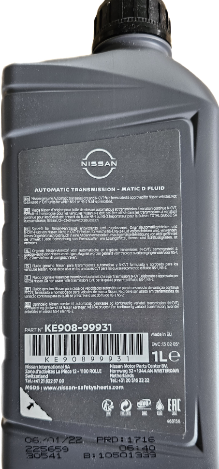 Ми 100% гарантуємо якість та справжність ATF Matic Fluid D NISSAN/INFINITI KE90899931, представленого в нашому інтернет-магазині, тому що ми працюємо виключно з прямими імпортерами та дистриб'юторами.