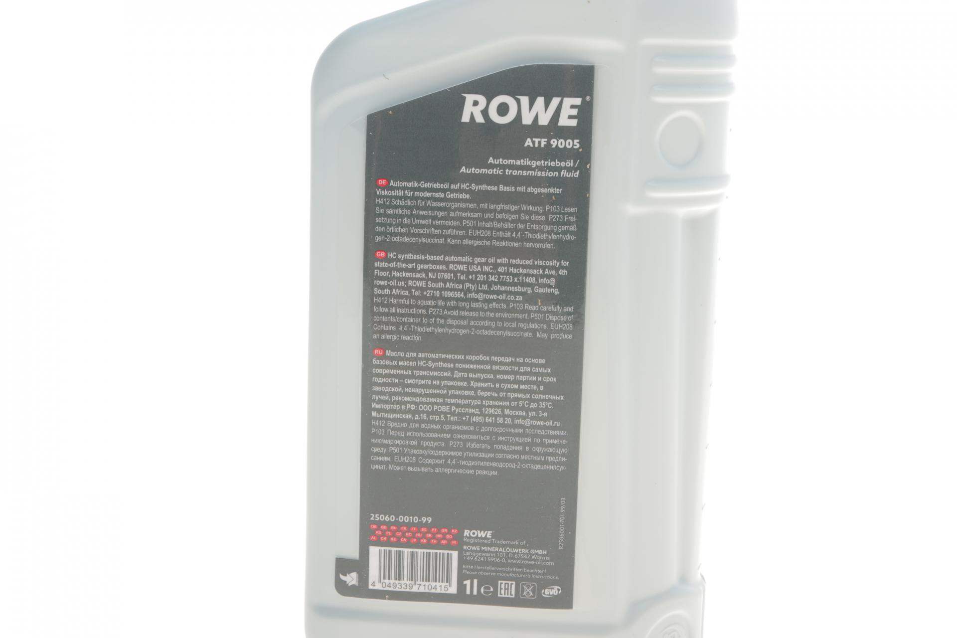 Ми 100% гарантуємо якість та справжність HIGHTEC ATF 9005 ROWE 25060001099, представленого в нашому інтернет-магазині, тому що ми працюємо виключно з прямими імпортерами та дистриб'юторами.