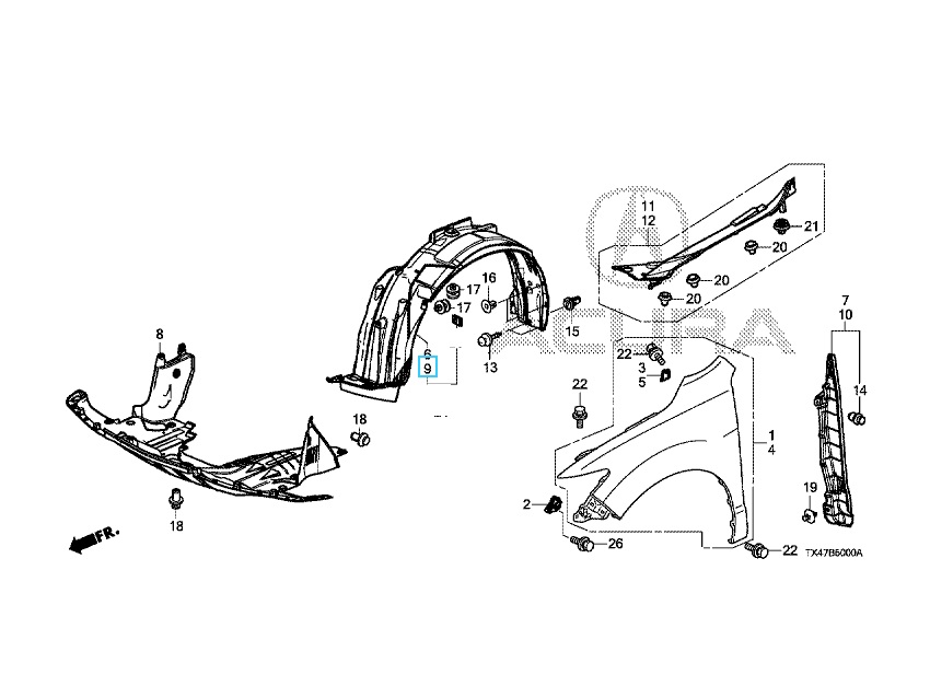 Підкрилок передній лівий HONDA/ACURA 74150TX4H00