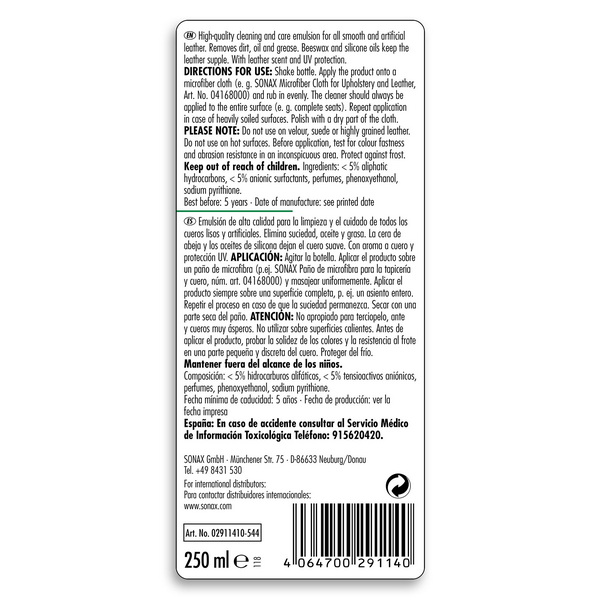 Ніжне очищення та догляд, освіжає кольори. Лосьйон високої якості для очищення та догляду за гладкою шкірою кабіни. Він легко видаляє олію, жир, бруд. Вітамін Е дає еластичність, захищає від крихкості. Бджоли та силіконовий віск забезпечують шкіру з тривалим захистом і діють воду -репетиту. Шкіра повертає свій оригінальний вигляд.