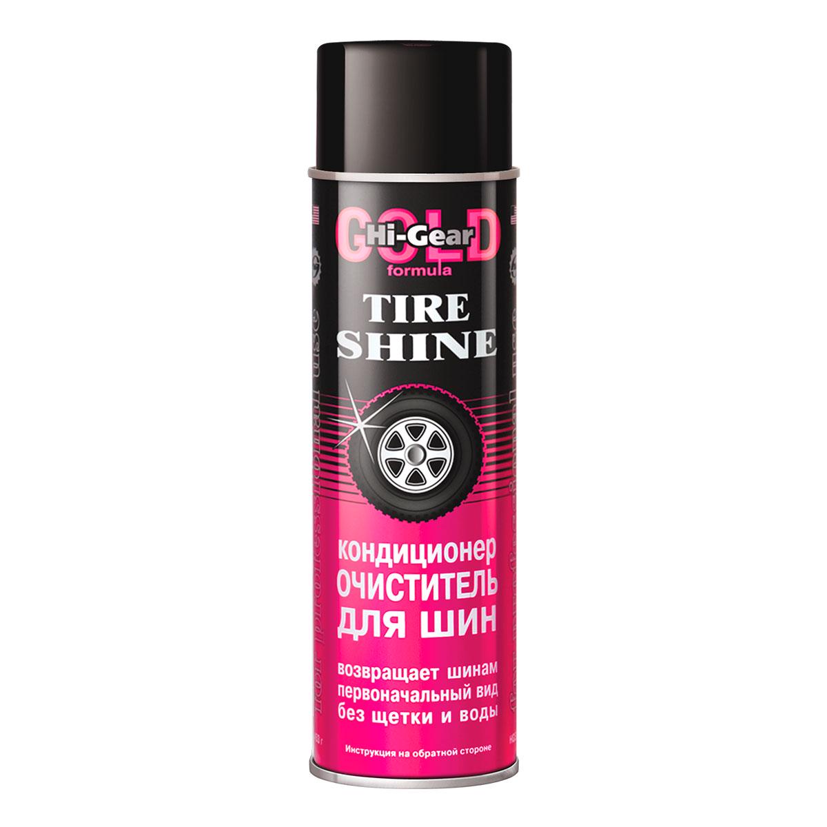 Літак літака шин, аерозоль Hi-Gear Shine Shine. Розроблений для оновлення, очищення та захисту шин від старіння та розтріскування.