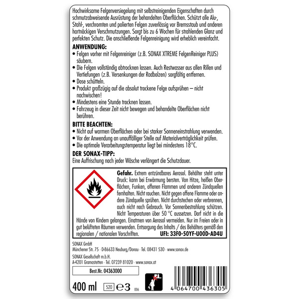 436300 SONAX Захистне покриття для дисків, 400 мл, шт