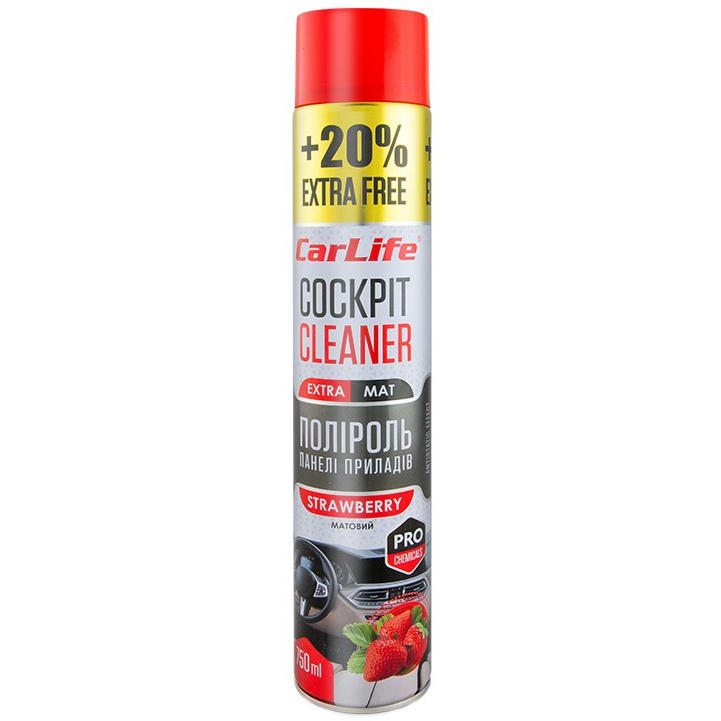 Поліроль панелі, Carlife Полуниця Cockpit Cleaner Extra Mat (матова) 750мл