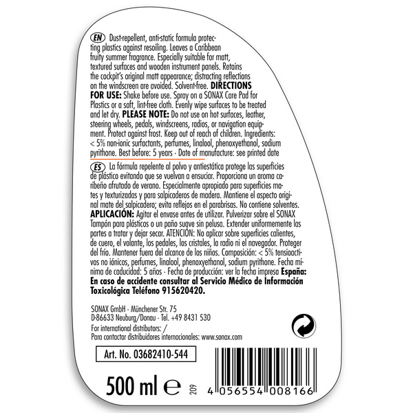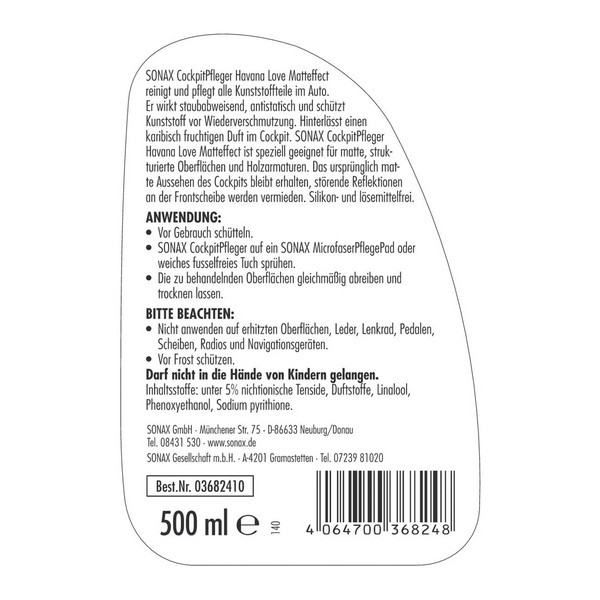 SONAX очисник пластику матовий, З АРОМАТИЗАТОРОМ "HAVANA LOVE", 500 МЛ,