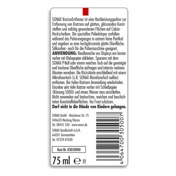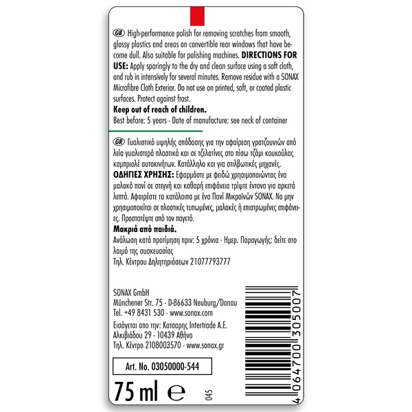 Очищувач-поліроль пластика SONAX Scratch Remover 0.075л (305000)