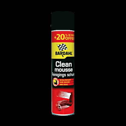 Bardahl Clean Mousse - універсальний очищувач виготовлений з концентрованих миючих поверхнево-активних речовин, солей лужних металів та антистатичних компонентів. Очищає всі типи чутливих матеріалів, таких як пластик (навіть пористі), органічне скло, алюміній, сталь, хром, нержавіюча сталь. Пристосування: офісна техніка та обладнання, монитори та сенсорні екрани, текстильні сидіння, інтерєр автомобіля. Чистити і зовнішні компоненти – диски, шини та фари. Очищувач антистатичний - запобігає осіданню пилки. Безпечний для лакованих та пофарбованих поверхонь, прокладок. Чи не залишає розводів.
