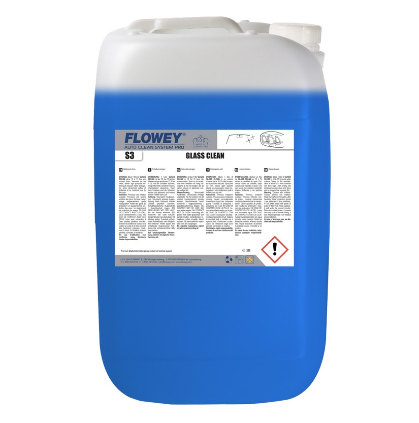 Очищувач скла FLOWEY GLASS CLEAN S3 - 25 л. Легко і без розводів чистить скло. Ідеальний засіб для догляду за дзеркалами, склом та іншими блискучими поверхнями. Є дуже економним очищувачем для скла та вікон. Засіб простий у використанні, необхідно очистити ганчіркою без полоскання. Не залишає ніяких слідів.