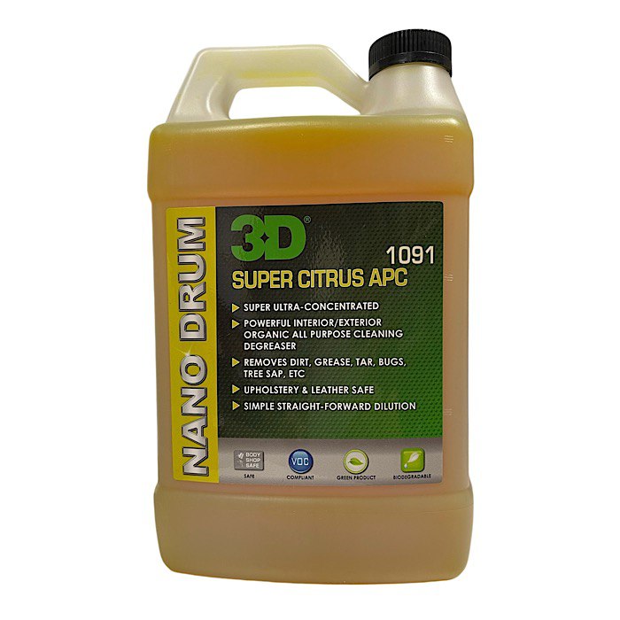 3D Super Citrus APC використовує лімоненові олії, які є групою хімічних сполук, відомих як терпени. Ці сполуки витягують із шкірки апельсинів, лаймів, грейпфрутів та інших цитрусових. Після екстракції терпенові олії Limonen часто називають d-лімоненом, що є його хімічною формою після обробки. Ці натуральні олії чудово розчиняють і емульгують будь-які нерозчинні у воді забруднювачі, такі як маслянисті плівки, дорожні смоли, жир, бруд, бризки від жуків, сік дерев а також інші забруднення, пов’язані з автотранспортом.