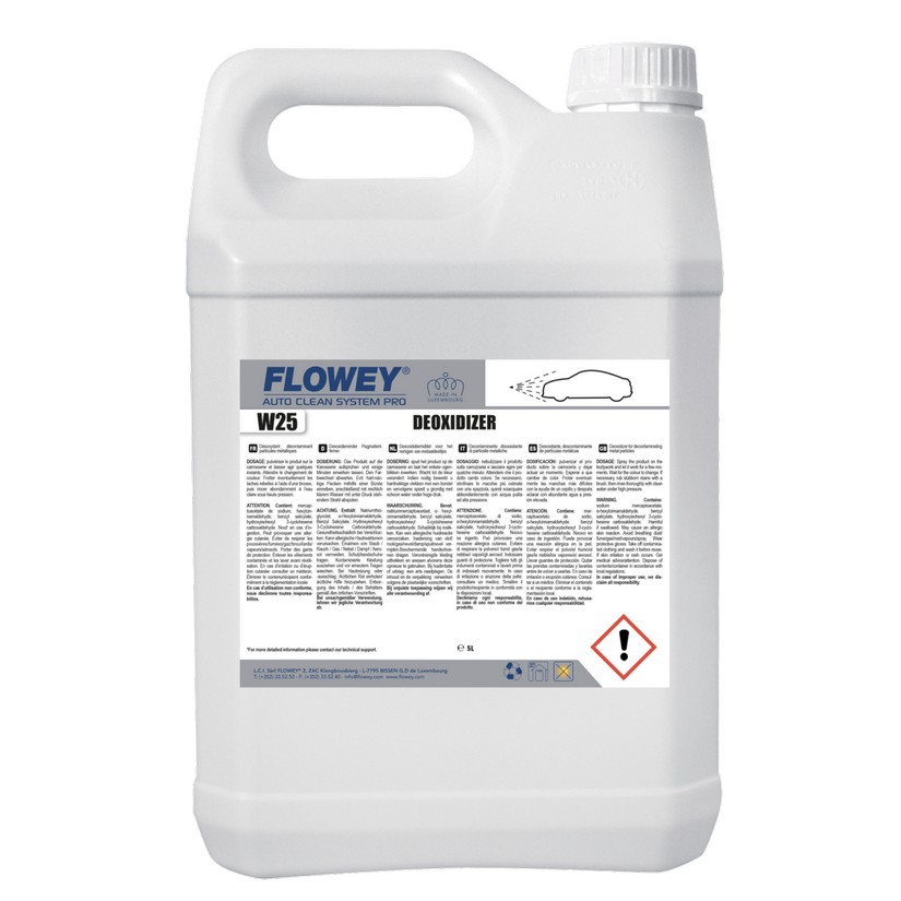 Очищувач від металевих вкраплень та тормозного пилу FLOWEY DEOXIDIZER W25 - 1л. DEOXIDIZER – це готовий до застосування продукт. Спеціально розроблений для ефективного та безпечного видалення металевого пилу (від гальмівних колодок та інших автомобілів), який потрапляє на кузов автомобіля та прискорює його корозію.