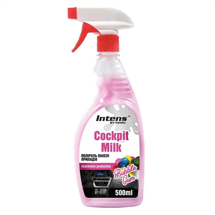Поліроль торпедо (молочко) Winso Intens Cocpit Milk (Buble gum) 500 мл тригер (810730). Поліроль торпедо Winso Intens Cockpit Milk (Bubble Gum)Поліроль – молочко для панелі приладів Winso Intens Cockpit Milk (Bubble Gum) - це не тільки засіб для догляду за вашим автомобілем, але й ароматичний шлях до свіжості та неперевершеної чистоти. Спеціально розроблений для пластикових, вінілових та гумових елементів, цей продукт обєднує в собі усі необхідні якості для ідеального догляду за салоном.Призначення: Молочко ідеально підходить для догляду за панелями приладів та іншими елементами салону, повертаючи їм первинний блиск та приємний аромат Bubble Gum. Забезпечує комплексний захист від старіння, розтріскування та вигорання під впливом ультрафіолетового випромінювання.Особливості: Відновлення блиску: Унікальна формула молочка гарантує повернення природного блиску всім пластиковим, вініловим та гумовим деталям. Безпечна формула: Засіб не залишає плям та жирних розводів, забезпечуючи бездоганну чистоту оброблюваних поверхонь. Аромат Bubble Gum: Поліроль наповнить ваш салон приємним ароматом жувального мармеладу, створюючи атмосферу свіжості. Антистатичний ефект: Утворює стійкий антистатичний шар, який відштовхує пил та бруд, забезпечуючи тривалу чистоту. Захист від старіння: Запобігає старінню та розтріскуванню поверхні, відновлюючи її структуру.Поліроль торпедо Winso Intens Cockpit Milk (Bubble Gum) - це не просто засіб для догляду, а подорож у світ свіжості та аромату Bubble Gum. Зробіть свій салон ще приємнішим, дбаючи про його чистоту та вишуканість!