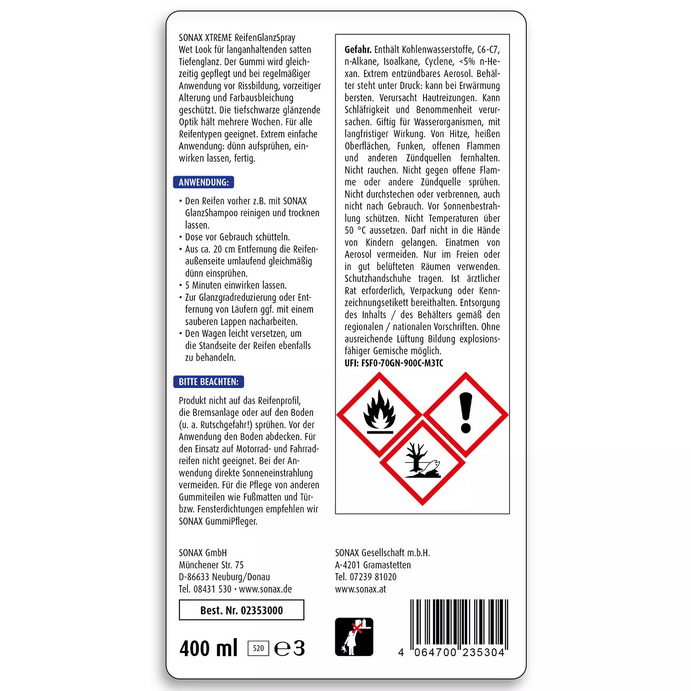 SONAX засіб для догляду за гумою з блиском, 400 МЛ. XTREME,