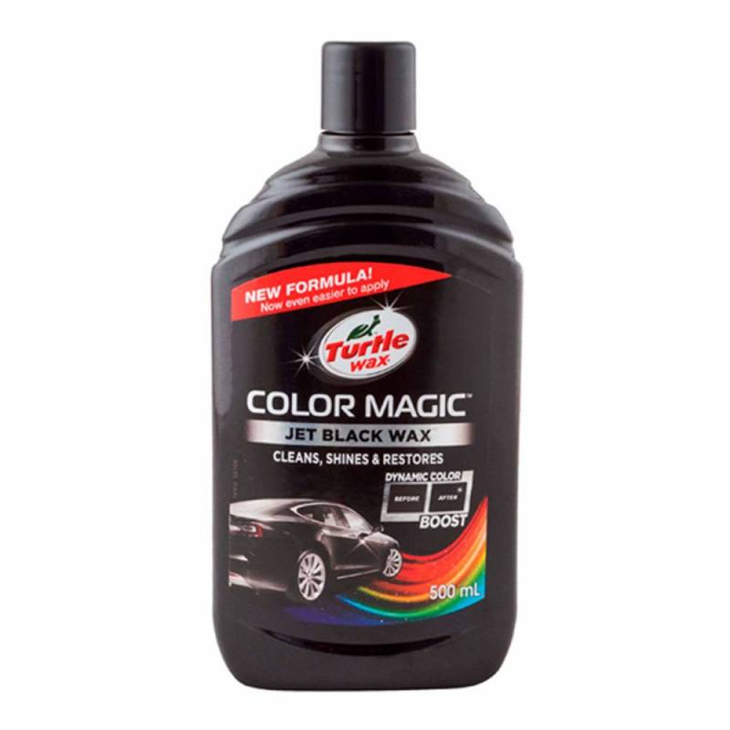 Чорний поліроль Turtle Wax Color Magic 500 мл на основі воску - високоефективний засіб для відновлення насиченості кольору кузова транспортного засобу. До складу воскового полироля входять пігменти і полімери здатні повернути автомобілю первісну привабливість. Завдяки середньої густини консистенції, даний засіб наноситься рівномірним шаром. Ймовірність утворення патьоків або нерівномірного розподілу пігменту повністю виключена. Щоб полірування авто чорного кольору пройшла успішно, рекомендуємо дотримуватися такої схеми нанесення воскової пасти: Використовуючи шампунь Turtle Wax, помийте автомобіль. Дочекайтеся повного висихання лакофарбових поверхонь. Ретельно збовтайте ємність з чорним полиролем Turtle Wax. Рівномірно нанесіть засіб на невелику ділянку поверхні, що фарбується. За допомогою м'якої тканинної серветки круговими рухами розітріть поліроль. Коли оброблювана поверхня придбає матовий наліт, переходите до наступної зони.