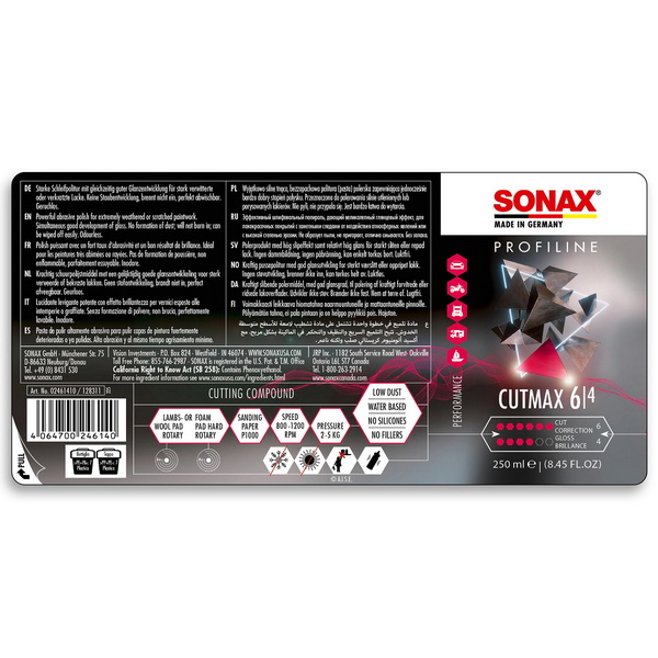 SONAX полірувальна паста, CUT MAX 6/3, PROFILINE, 250 МЛ,