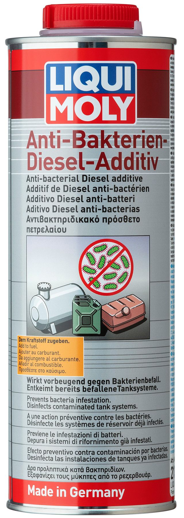 Антибактеріальна присадка в дизельне паливо містить високоефективний біоцид із широким спектром дії проти бактерій, дріжджів та пліснявих грибків. Біоцидна активна речовина не утворює продуктів, що корродують, згоряння і випробувано провідними виробниками двигунів. З обережністю використовуйте біоцидні продукти. Перед застосуванням завжди читати етикетку та інформацію про продукт.