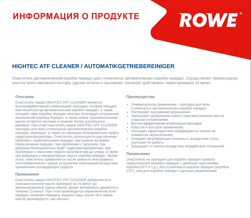 Промивач КПП HIGHTEC ATF CLEANER ROWE (22014000299)