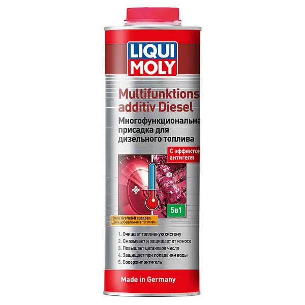 Регулярне застосування Liqui Moly Multifunktionsadditiv Diesel допомагає підвищити термін служби паливної системи дизельного автомобіля та підвищити силові характеристики двигуна.