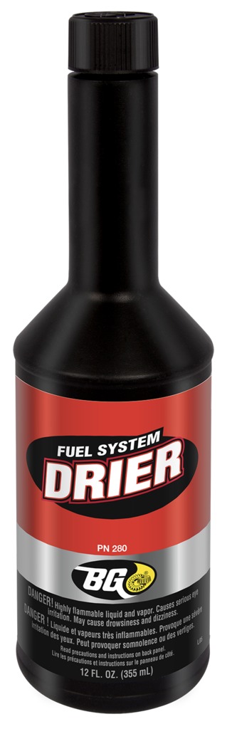 Осушувач паливної системи BG містить безпечний та ефективний хімічний компонент, який поглинає вологу в паливній системі та дозволяє її безпечно спалювати двигуном.