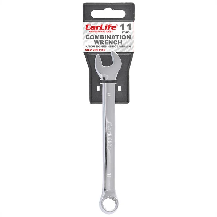 Ключ комбінований CARLIFE CR-V,11 мм, хромово-ванадієва сталь, нікель-хромоване покриття, кільце під кутом 15° DIN 3113, з тримачем