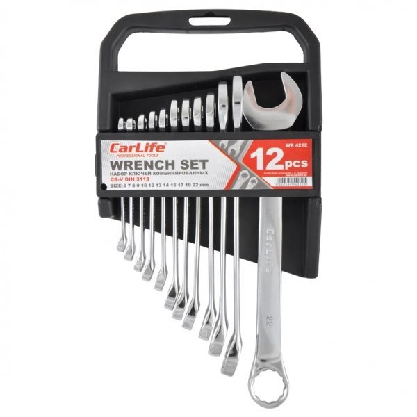 CARLIFE CARLIFE Набір ключів комбінованих CR-V, 12шт. 6-22 мм, 6-7-8-9-10-12-13-14-15-17-19-22 (WR4212)