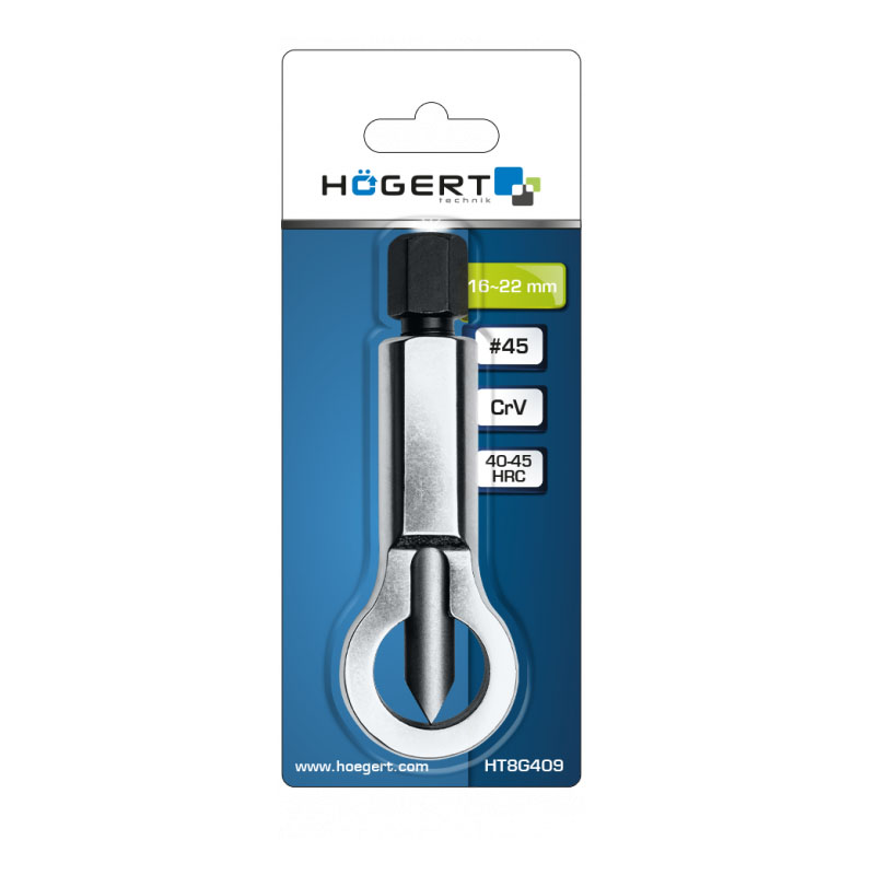 Характеристики• робочий діапазон 16 - 22 мм;• шестигранник HEX 19 мм;• режущий штифт виготовлений з високоякісної вуглеродистої сталі С45;• корпус виконаний з легованої хромованадієвої сталі;• прочний закалений корпус з твердістю 40-45 HRC.
