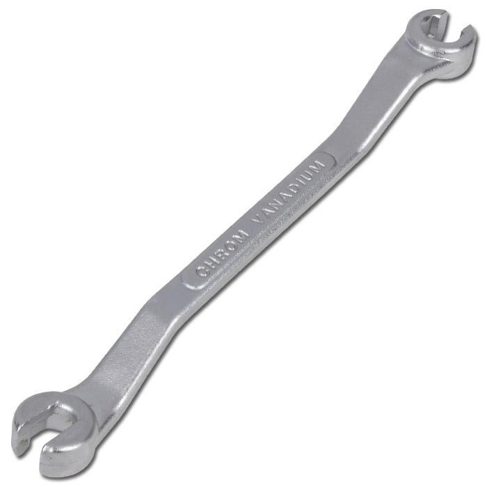 Ключ для гальмівних трубопроводів RockForce RF-608A0809 Пристосування: Спеціальний ключ для обслуговування гальмівних трубок Підходити для гайок/штуцерів гальмівних трубок розміром 8 та 9 мм. Хром-ванадієва сталь, хромована полірована Відмінні особливості: Виготовлений з міцної та зносостійкої хром-ванадієвої сталі.