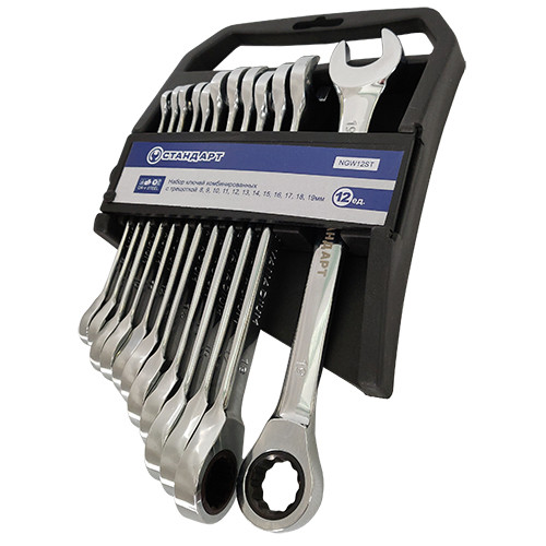 Набір ключів комбінованих з тріскачкою 8-19мм 12ед. на холдере СТАНДАРТ NGW12ST