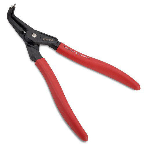 Круглогубці для зняття стопорних кілець TOPTUL 7" (розжим загнуті) посилені DCBA1307. На сьогоднішній час у світі розроблено новаторами і зроблено величезну кількість різноманітного інструментарію по діагностиці і ремонту автотранспорту. Починаючи від простої викрутки і закінчуючи новітніми електронними приладами найвищої технічної точності. У кожного майстра з ремонту автомобіля в своєму особистому арсеналі повинен знаходиться інструмент для зняття і установок стопорних кілець. Так як без цього інструменту зняти або встановити стопорні кільця неможливо. Стопорные кольца распространены очень широко и используются в узлах где присутствуют соединения валов с отверстиями (наиболее часто при установке подшипников). Для такого вида работы с деталями необходимо приобрести такой вид инструмент, как круглогубцы для стопорных колец. Подобные прецизионные инструменты, предназначенные для выполнения деликатной работы. Круглогубцы для стопорных колец можно разделить на две группы: модели, работающие на сжим (для извлечения внутреннего стопорного кольца) и на разжим (для извлечения наружного стопорного кольца). | Круглогубці для зняття стопорних кілець мають наконечники двох видів, прямий і зігнутої форми. Вибираючи круглогубці для стопорних кілець слід звернути свою пильну увагу на міцність губок. Адже інструмент виготовлений з неякісного матеріалу швидко приходить в непридатність. У виготовленні інструментарію виробництва TOPTUL (Тайвань) використовуються багатокомпонентні марки сталі з використанням стійкого до окислення сплаву хром - ванадій. Вислизанню інструменту з рук перешкоджає обрезиненное покриття ручок, що сприяє значному їх комфортного використання.