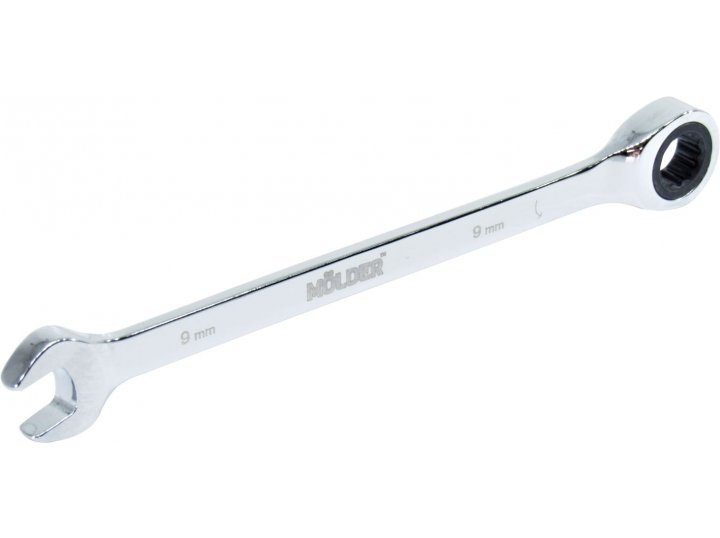 Ключ комбінований MOLDER з трещіткою CR-V, 9 мм, хромово-ванадієва сталь, 72-зубцевий механізм, нікель-хромоване покриття, DIN 3114