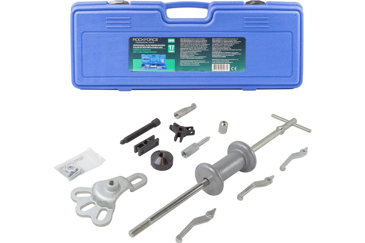 ROCKFORCE Молоток зворотний для знімання підшипників у наборі зі змінними лапами (17 предметів) у кейсі ROCKFORCE RF-664B (RF664B)