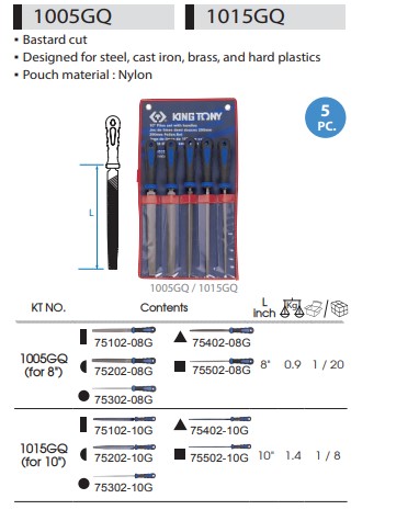 King Tony Набiр напилкiв 5 одиниць 200 мм (1005GQ)